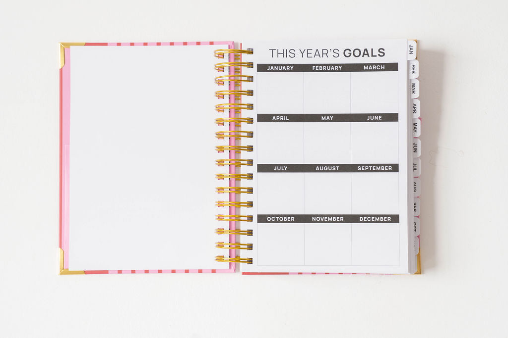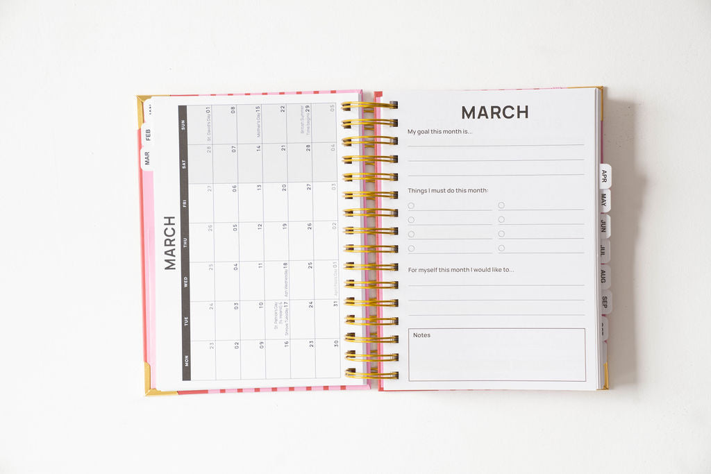 Monthly goal & task tracker  a page each month to allow you to set your most important goal for the month ahead, set out a list of important tasks to tick off, and also a wellness section that allows you to note at least one thing a month that you would like to do for yourself.  Helping you prioritise YOU!